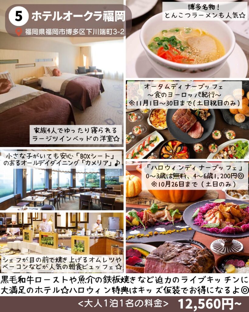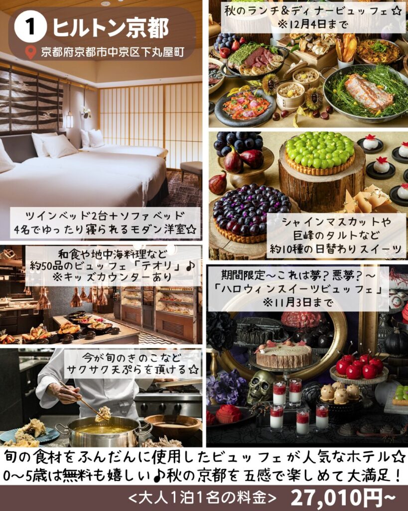 🍍10月はハロウィンビュッフェ、11月はオータムビュッフェを楽しめるホテル!4歳以下が無料に加えて七五三を迎える子どもや仮装で料金が安くなることも!ライブキッチンも豊富なので出来立ての料理が楽しめるよ!