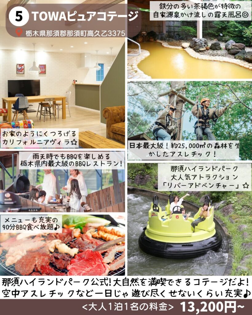 5. 那須ハイランドパークオフィシャルホテル TOWAピュアコテージ