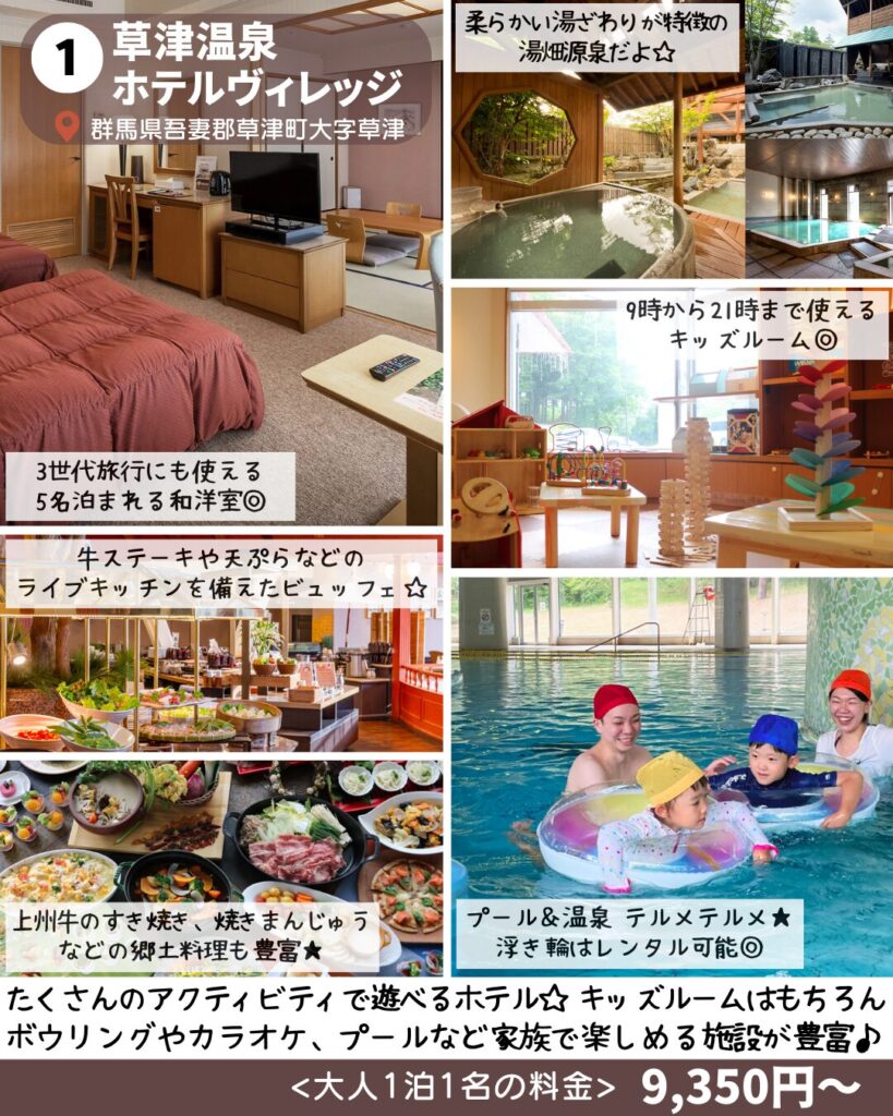 有名な湯もみショーをホテルの中で楽しめたり、プールにカラオケが無料で遊べたりと、草津温泉は大人だけでなく子供との旅行でも十分に楽しめます。